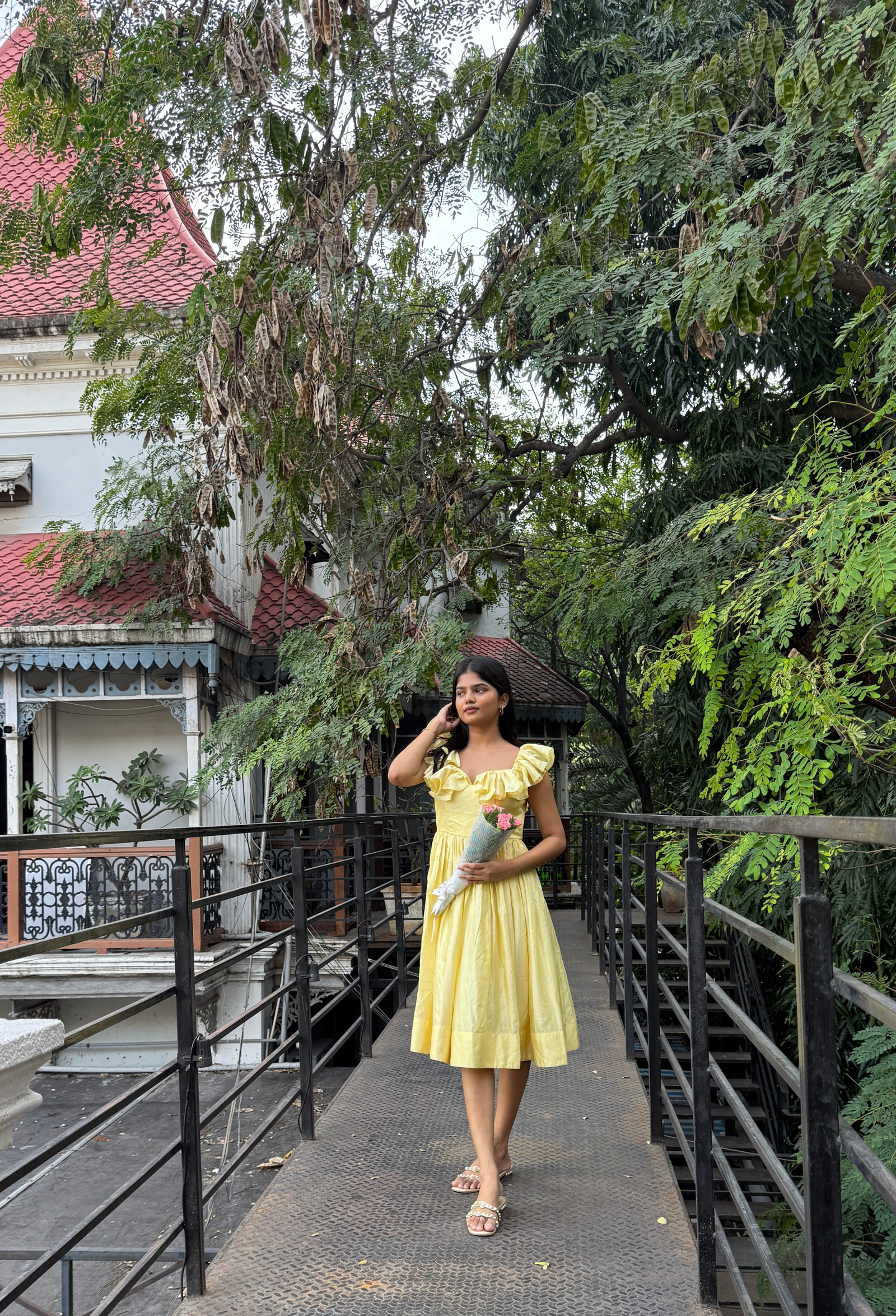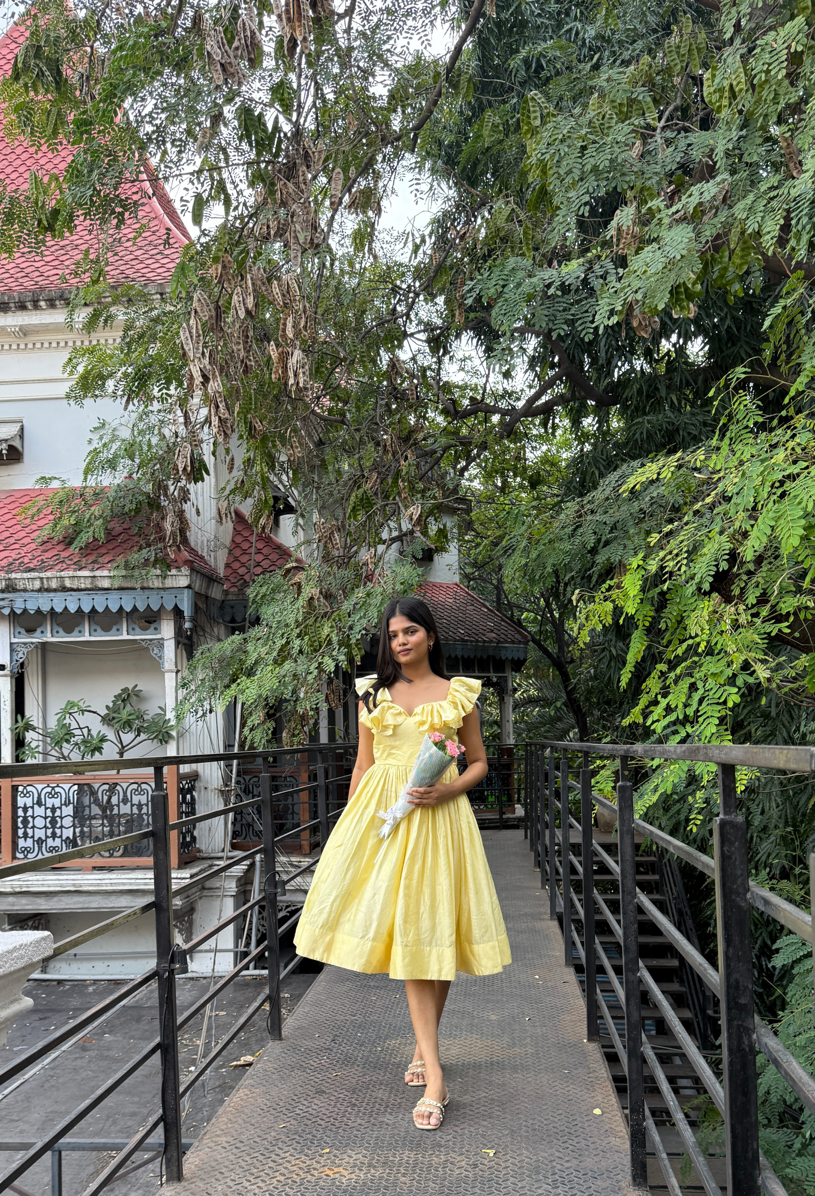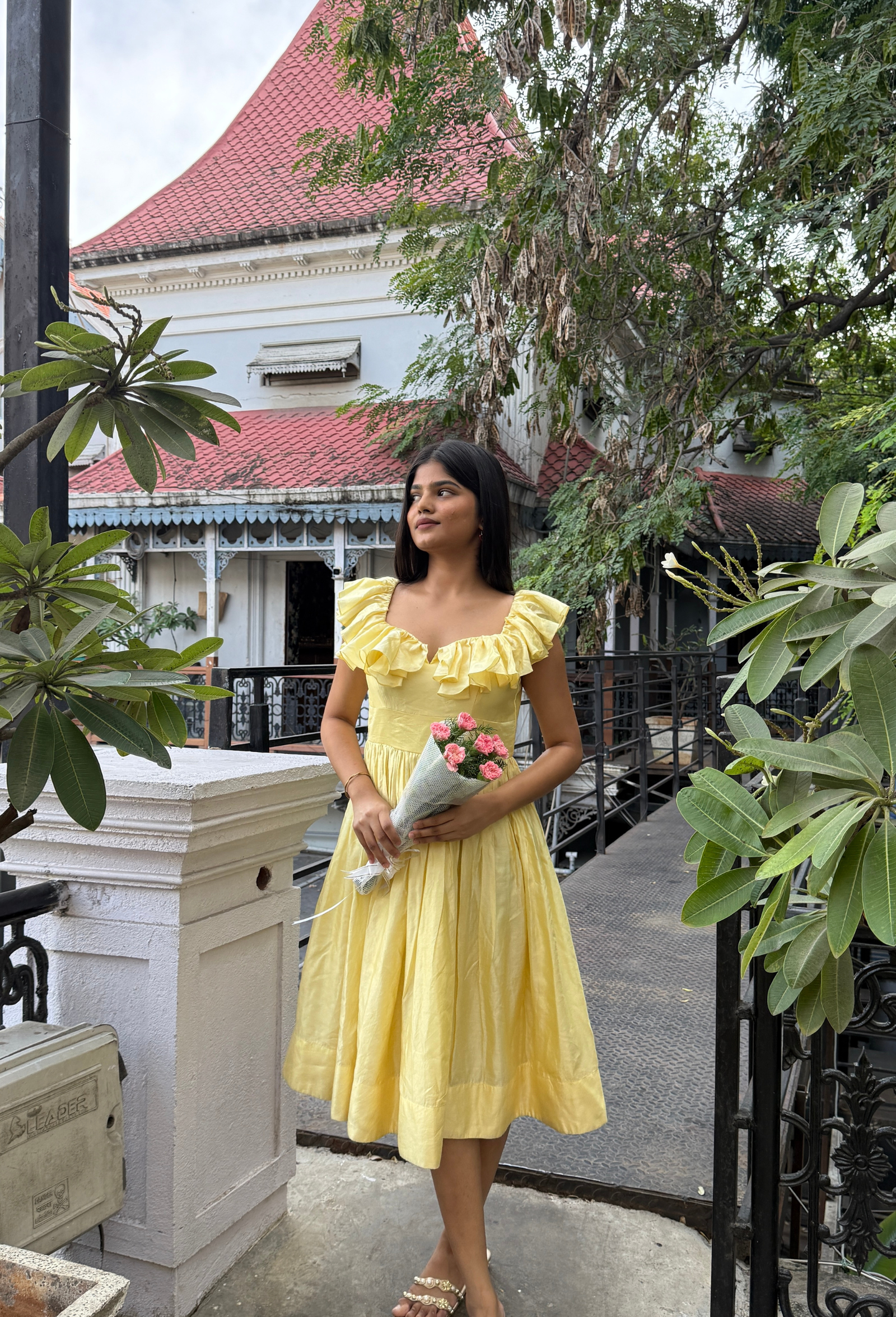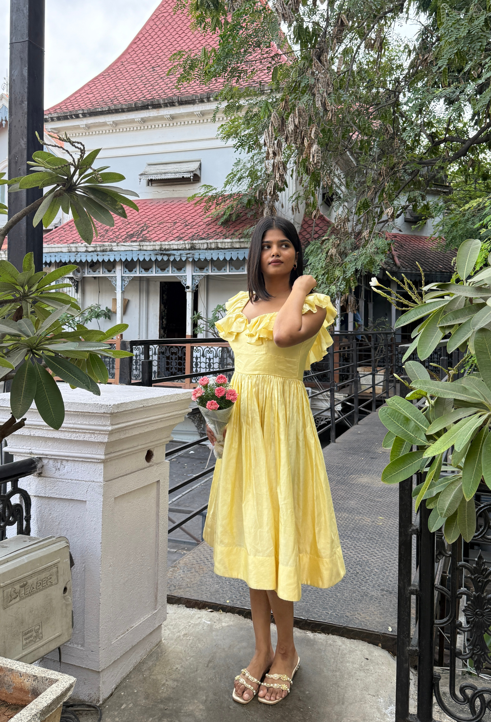 Bright, joyful, and irresistibly graceful — the Butter Bloom frock captures sunshine in spun Chanderi silk. The soft butter-yellow color paired with ruffled sleeves adds playful sophistication, while the flowing silhouette ensures comfort and charm. Ideal for cheerful lunches, birthday gatherings, or afternoon parties that call for something bright and beautiful.