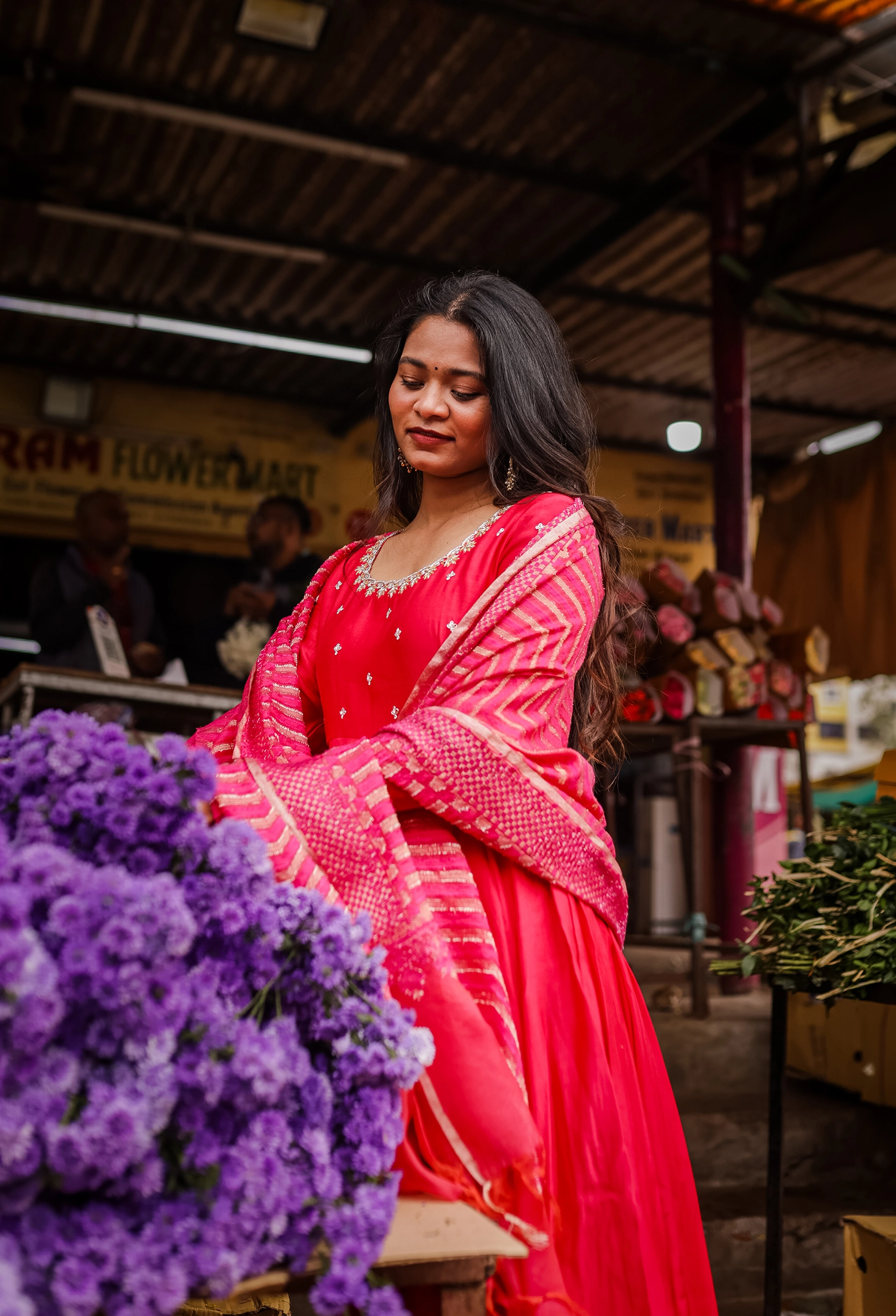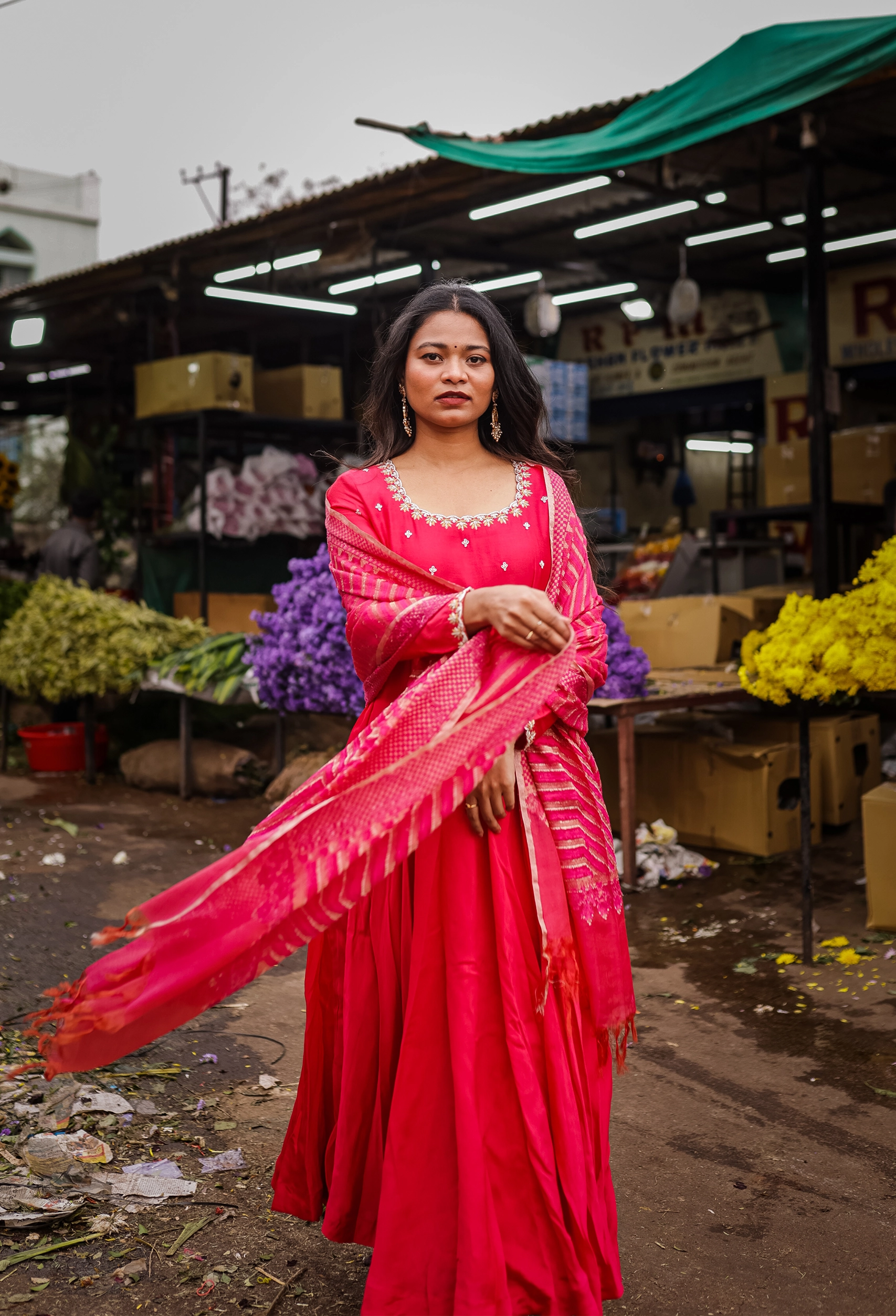 Step into timeless elegance with our Chanderi Silk Anarkali, a stunning fusion of heritage craftsmanship and contemporary charm. Crafted from luxurious Chanderi silk, this Anarkali is lightweight, breathable, and features a subtle sheen that adds an ethereal touch to your ensemble. The rich texture and delicate flow of the fabric ensure a regal yet effortless drape, making it a must-have for festive occasions, weddings, and grand celebrations.